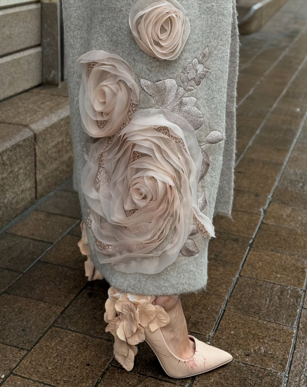 3D Flower Glitter Long Coat