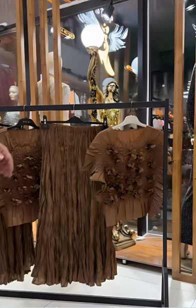 This exquisite skirt suit combines timeless elegance with modern romance. The tailored blazer is paired with a flowing pleated skirt adorned with intricate three-dimensional floral embellishments that create a stunning, tactile texture. Perfect for a garden party, wedding, or any event where you want to make a unforgettable impression.