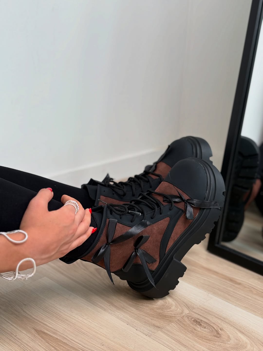 Signature Bow Detail: Adorned with bow-tie at the shaft, adding a feminine and whimsical touch to the rugged Martin boot silhouette.
