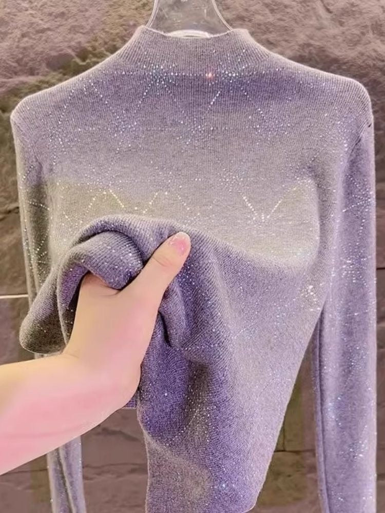 Rhinestone Comfortable Long-Sleeve Knit Top