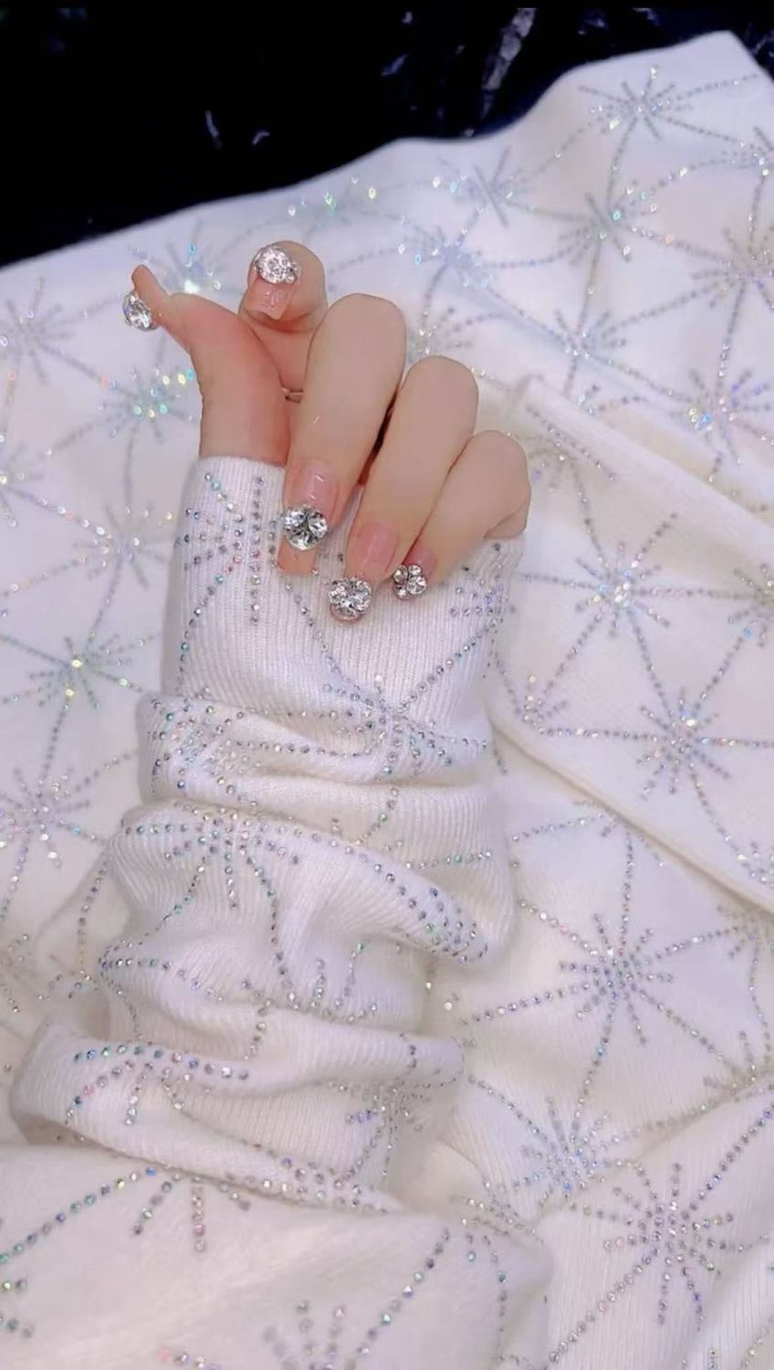 Artisan Embellishments: Adorned with hand-applied rhinestones that create a captivating play of light and texture on a soft knit base.